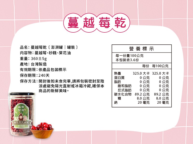 過敏原資訊:本產線與堅果類產品於同一工廠生產,食物過敏者請留意。
